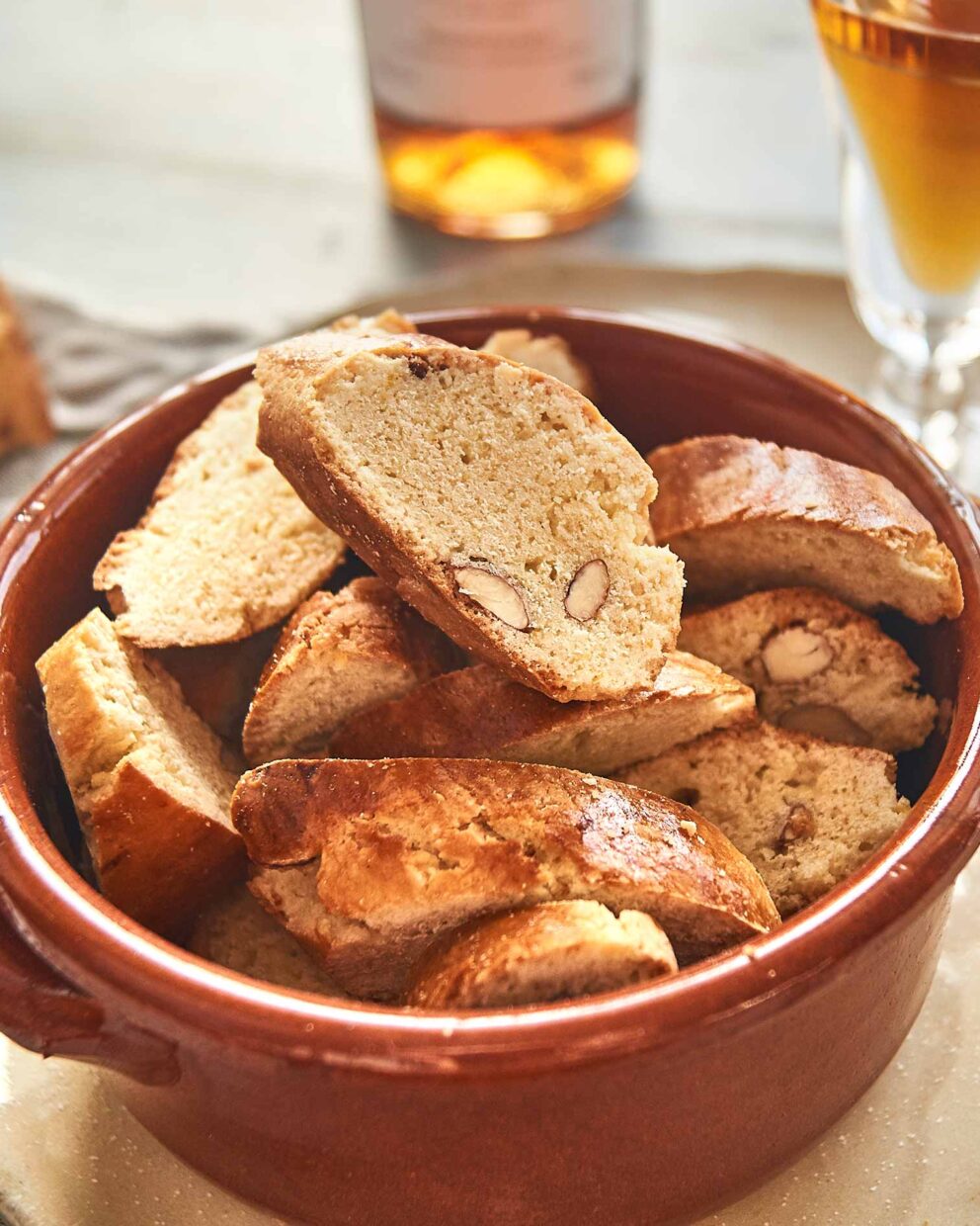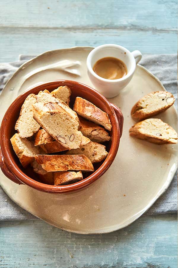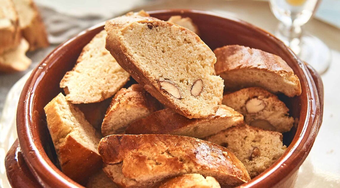 Näitä toscanalaisia mantelikeksejä kastetaan vin santoon ja syödään ympäri vuoden, mutta mantelin tuoksu tuo joulun tunnelman. Cantuccinit, jotka tunnetaan myös nimellä Biscotti di Prato, paistetaan kahdesti.